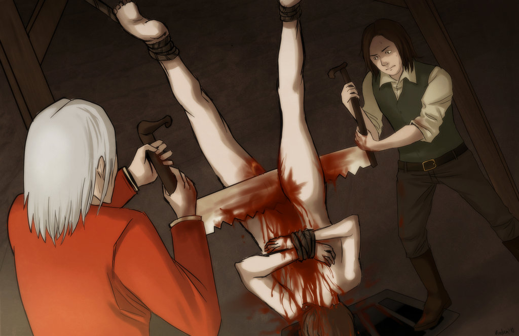Распил голой женщины двуручной пилой