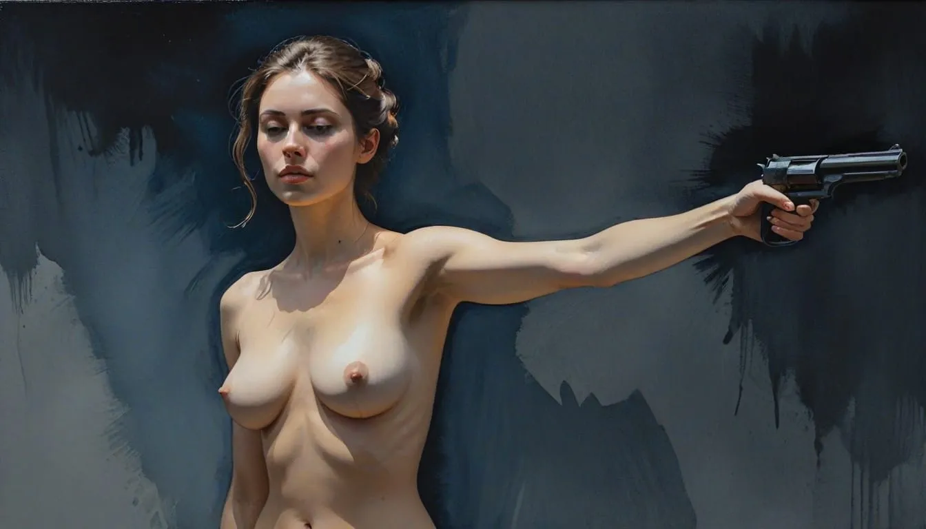 a-woman-with-her-bare-chest-exposed-a-gun-pointed-at-her-.webp