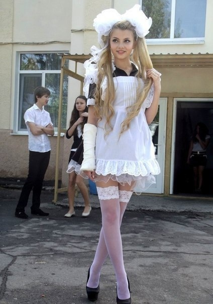 Последними девчонки надевают свежую форму. Я хожу точно в такой же новой нарядной форме что и у них.