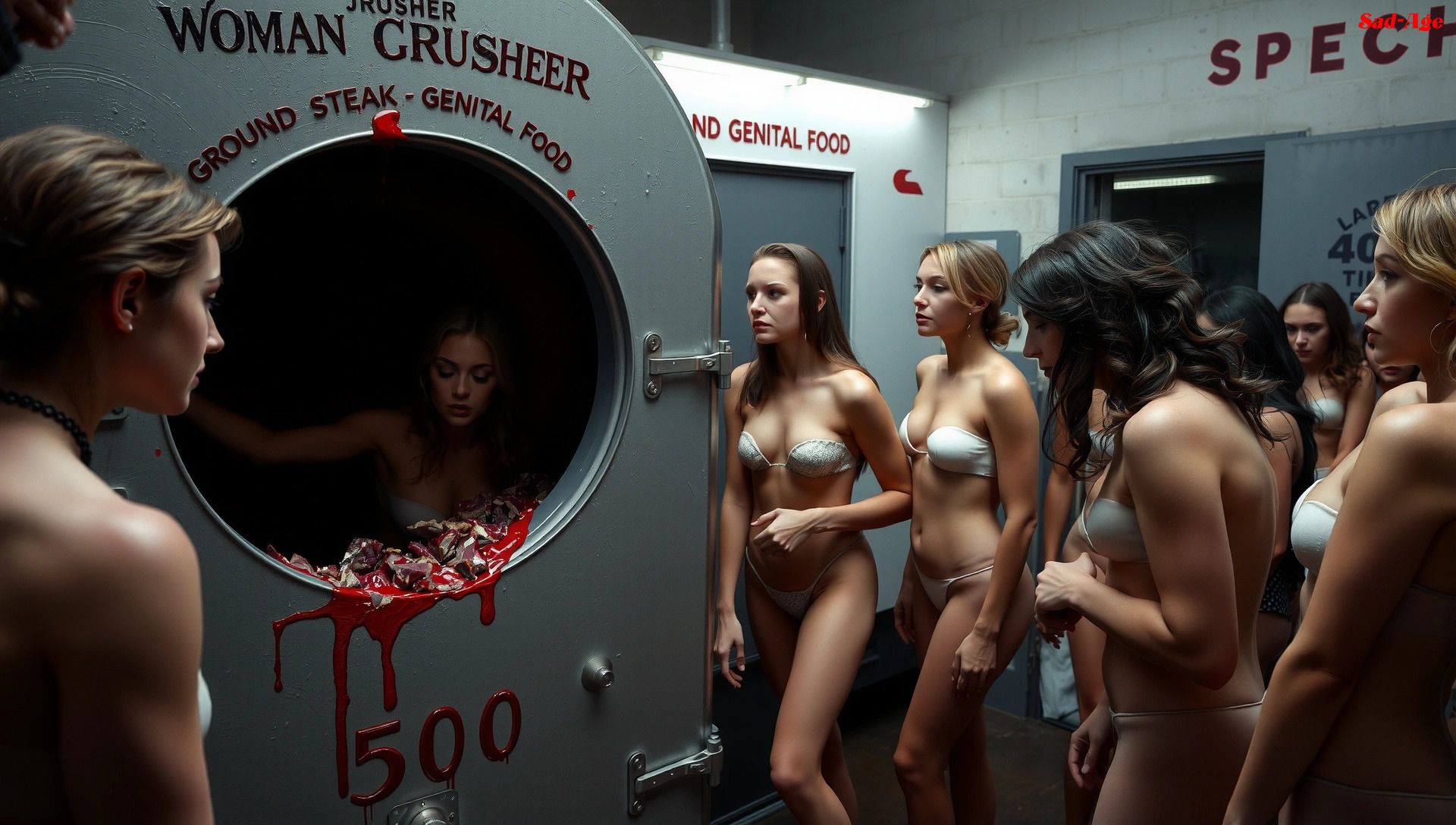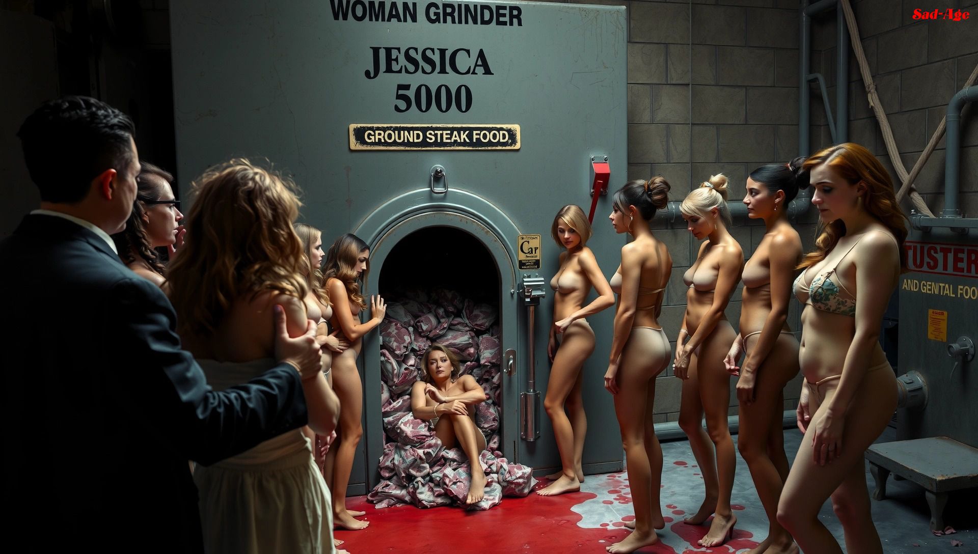 The daughter of the famous visionary Dolcett, Jessica Dolcett is the founder of the new major food chain JESSICA company, a company specializing in the production of carned food based on women's meat. His group distributes various quality products for human and animal food. It is made up of a restaurant, a store, breeding of female clones, and large slaughtering centers and its live TV channel. Its main strong point is its JESSICA-5000 grinder capable of dismembering the bodies of living women with great efficiency. The meat is sorted and always comes out without residue or bone chips. Here are some selfies of the girls before their end.