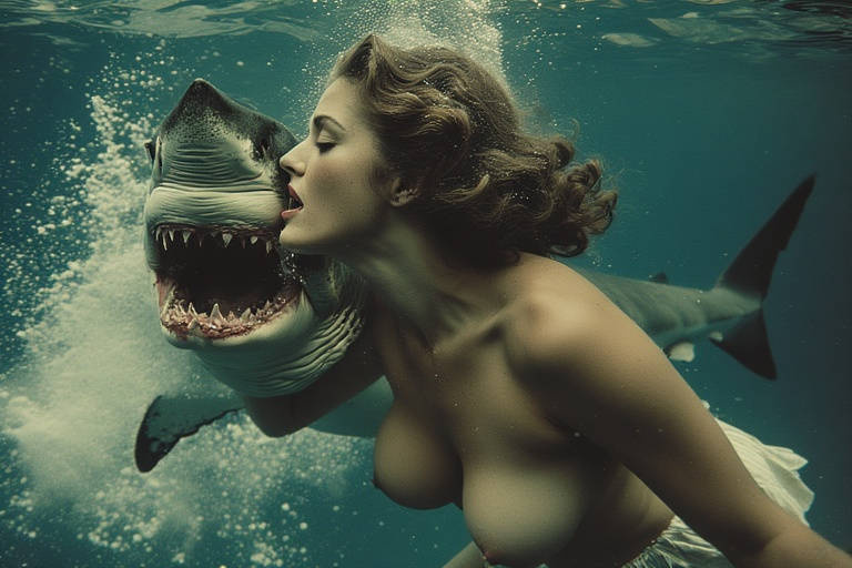 Чудовище поглощает голую красотку