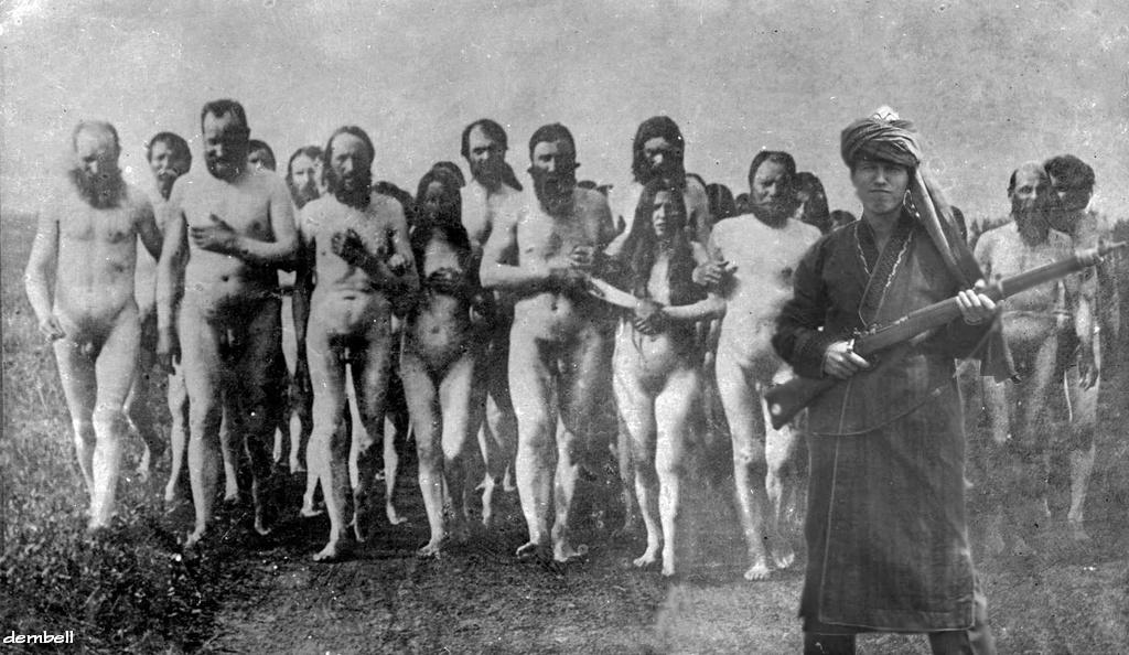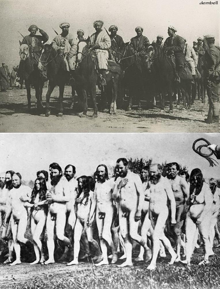 Загони басмачів вриваються в руські села і відводять абсолютно голих селян до степу на розправу. Чоловікам відріжуть дітородні органи і переріжуть горло як баранам а жінок зґвалтують і продадуть у рабство: