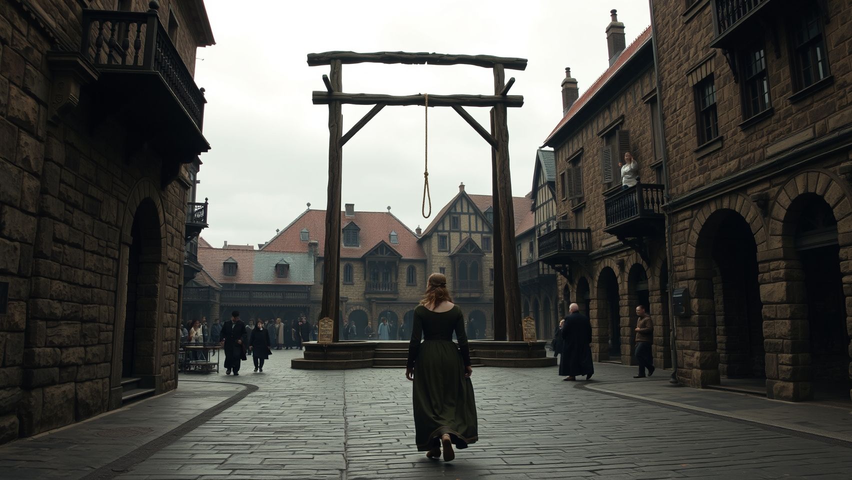 A medieval woman walks towards gallows - FS.jpg