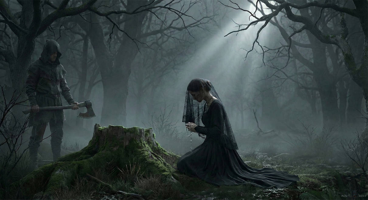 ИИ рисует уже очень профессионально... одна беда, матчасти (в смысле, истории) не знает совершенно. Судя по форме меча, это уже христианское время - а тогда нагота на эшафоте уже харам. В смысле ферботен... в общем, невозможна совершенно. Ибо недопустимое оскорбление общественной нравственности.