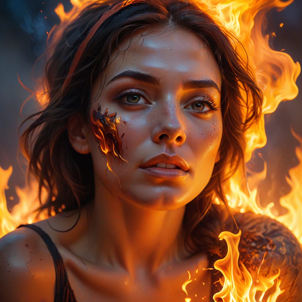 Beautiful naked woman big breasts sitting in a burning pyre - 4.png