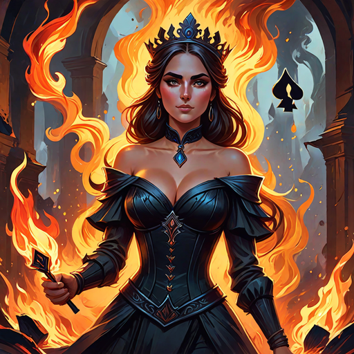 Beautiful queen of spades engulfed in roaring flame - 12.png