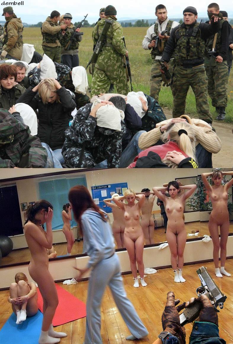 Терористи знущаються над заручниками - чоловіків і жінок змушують оголюватися прямо на вулиці знімаючи це все на відео: