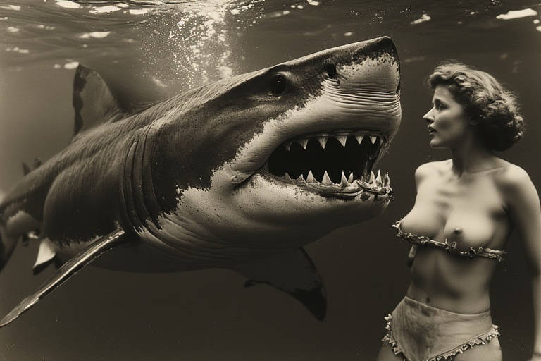 Чудовище поглощает голую красотку