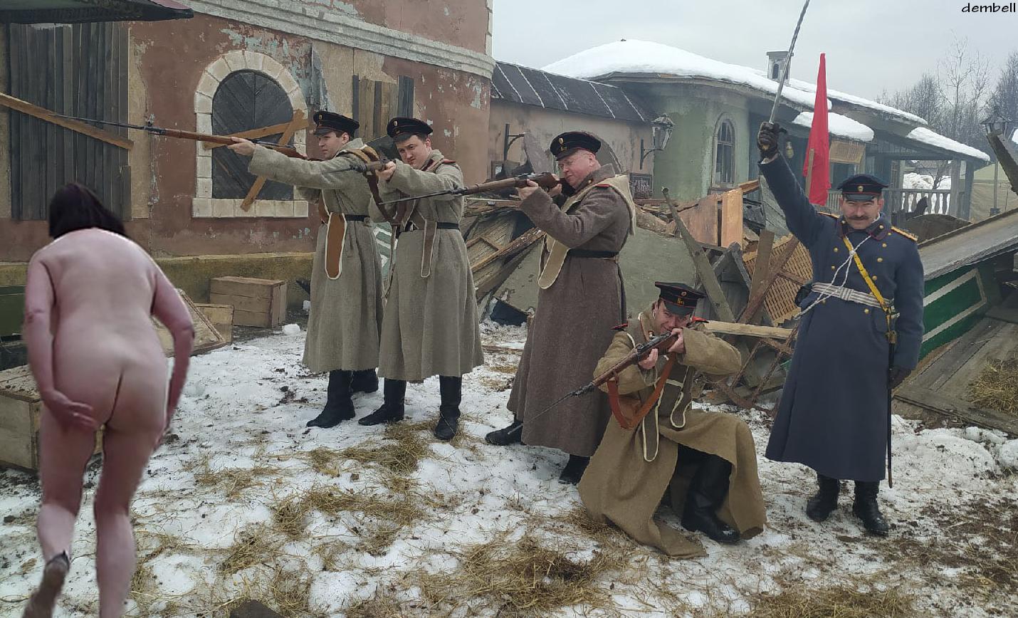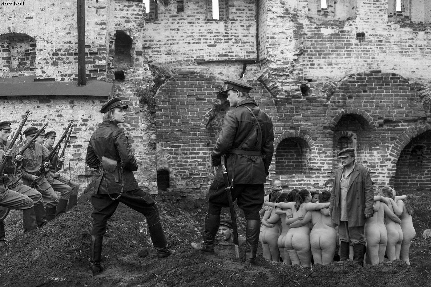Червоні увійшли в місто, за наказом ревтрибунала відбувається ліквідація монархічної організації, що складається з дружин офіцерів і сестер милосердя. Розстрільні команди з місцевих селян і латиських стрільців виводять заарештованих жінок на вулицю і змушують роздягатися догола перед стратою: