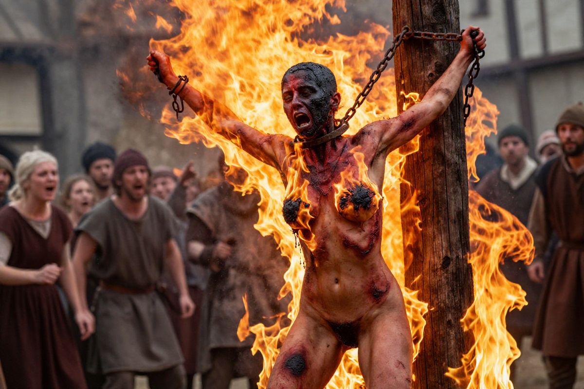 Как ни странно, такие сожжения имели место... только не нагишом (хотя кто знает - в древнем Риме могли и так развлекаться...)