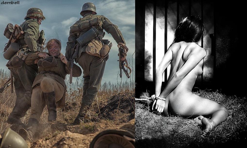 Радянських жінок-військовополонених змушують роздягатися догола перед розстрілом, тих хто відмовляється роздягатися б'ють і зривають одяг силою: