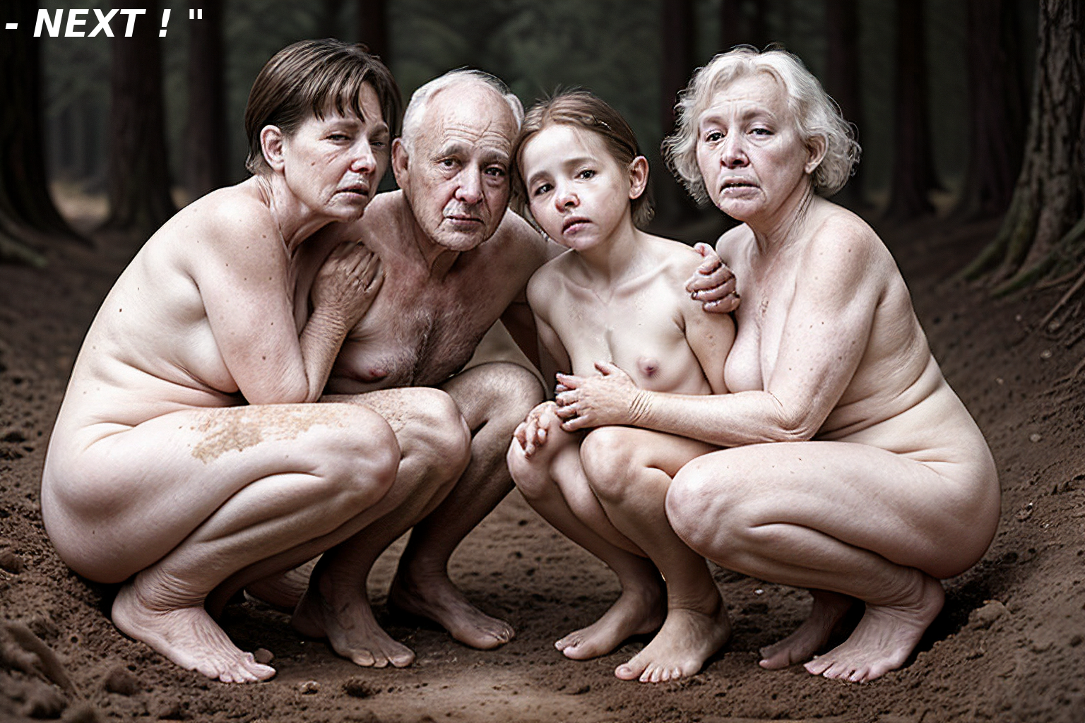 Within earshot of the distant "Pop pop pop" the Rathburn family undresses and walks together.