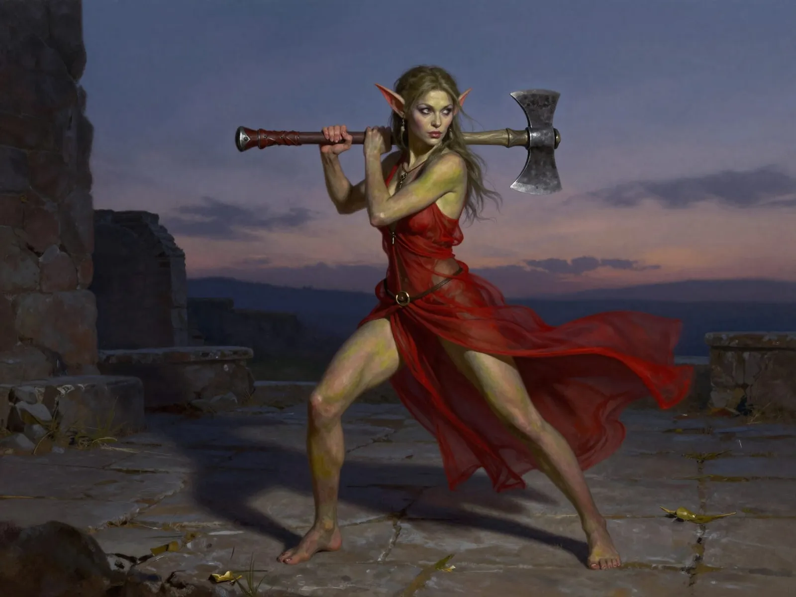 a-confident-female-goblin-with-lightly-tinted-olive-skin-stands-in-a-ruined-stone-courtyard-at-dusk-.webp