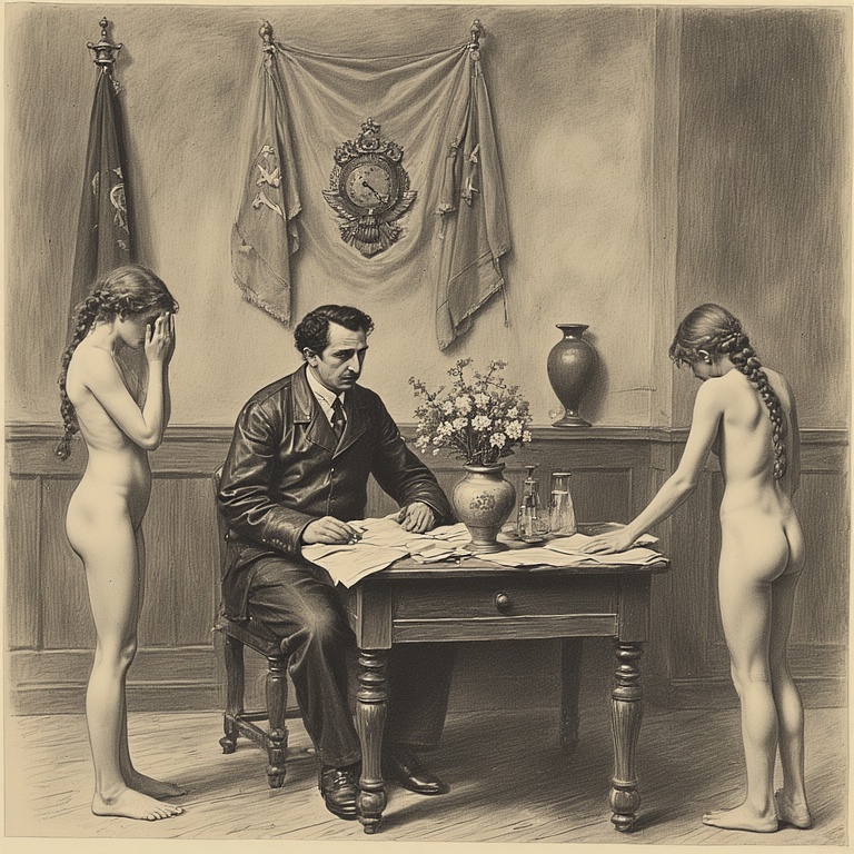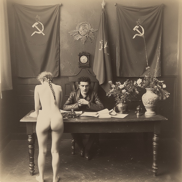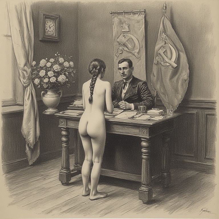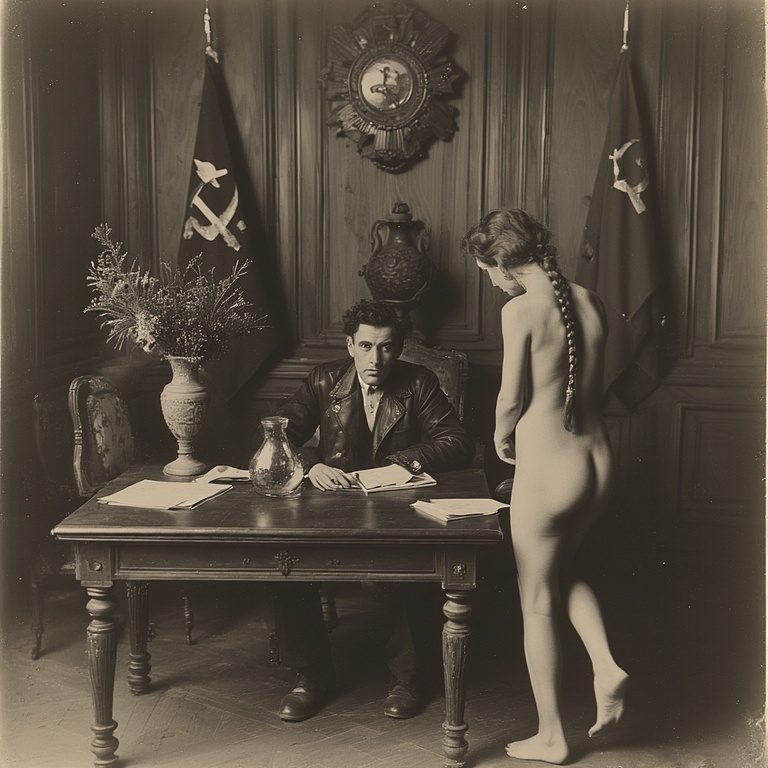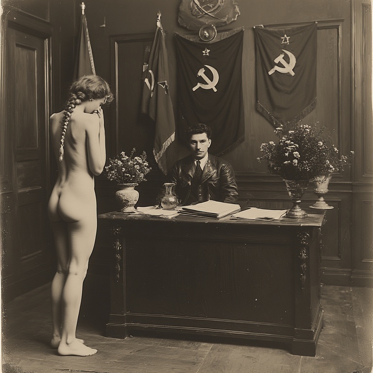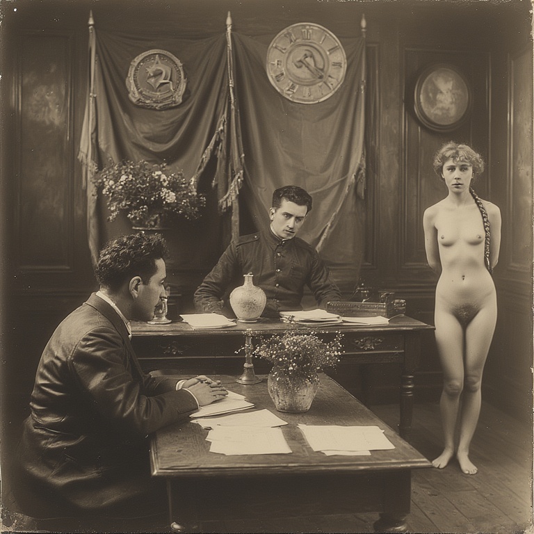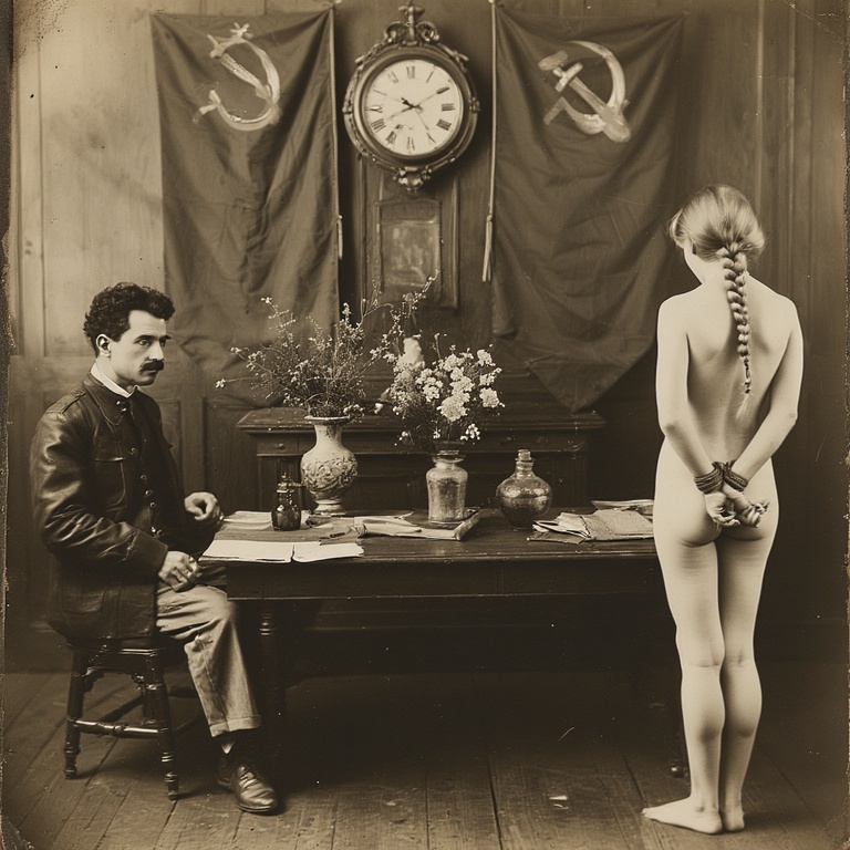 Председатель ГубЧК, пламенный революционер Абрам Блюм, лично допрашивает женщин обнаруженных в захваченном обозе белых. Поскольку буржуазная мораль отменена, арестованных на допрос приводят голыми, чтобы сломить их волю к сопротивлению.