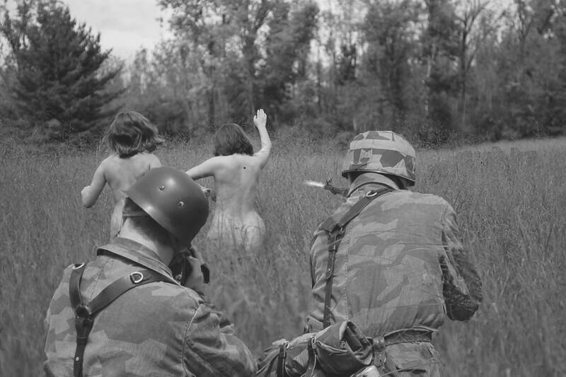 A small group are forced to undress, walk 30 meters, pistol shot.