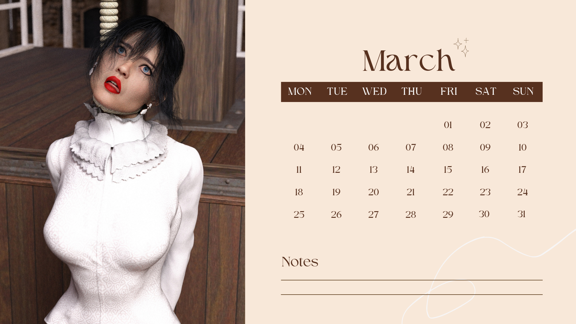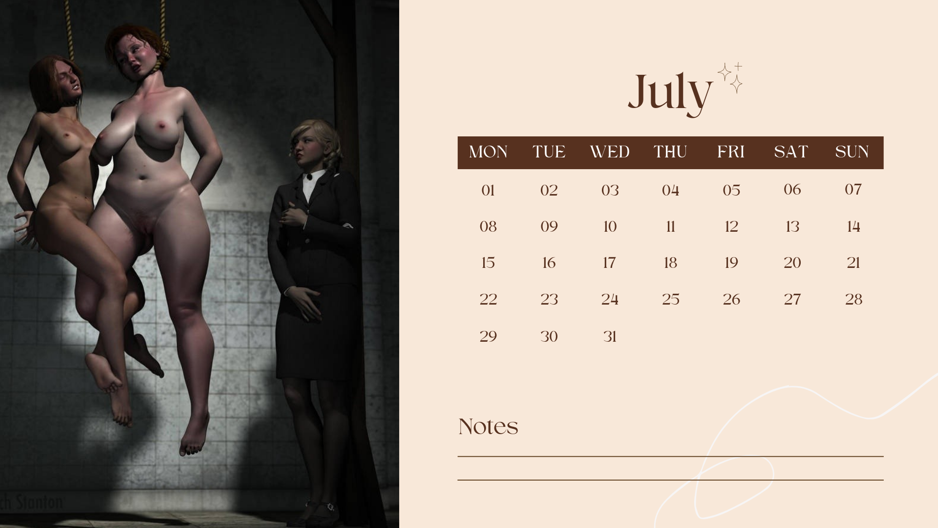 Так что не судите строго - пока это "проба пера", не более того (да и вообще я ни разу не дизайнер). Я думаю для начала создать по календарю по каждой теме - порка, гильотина, разные виды пыток... ну, а там как пойдёт.