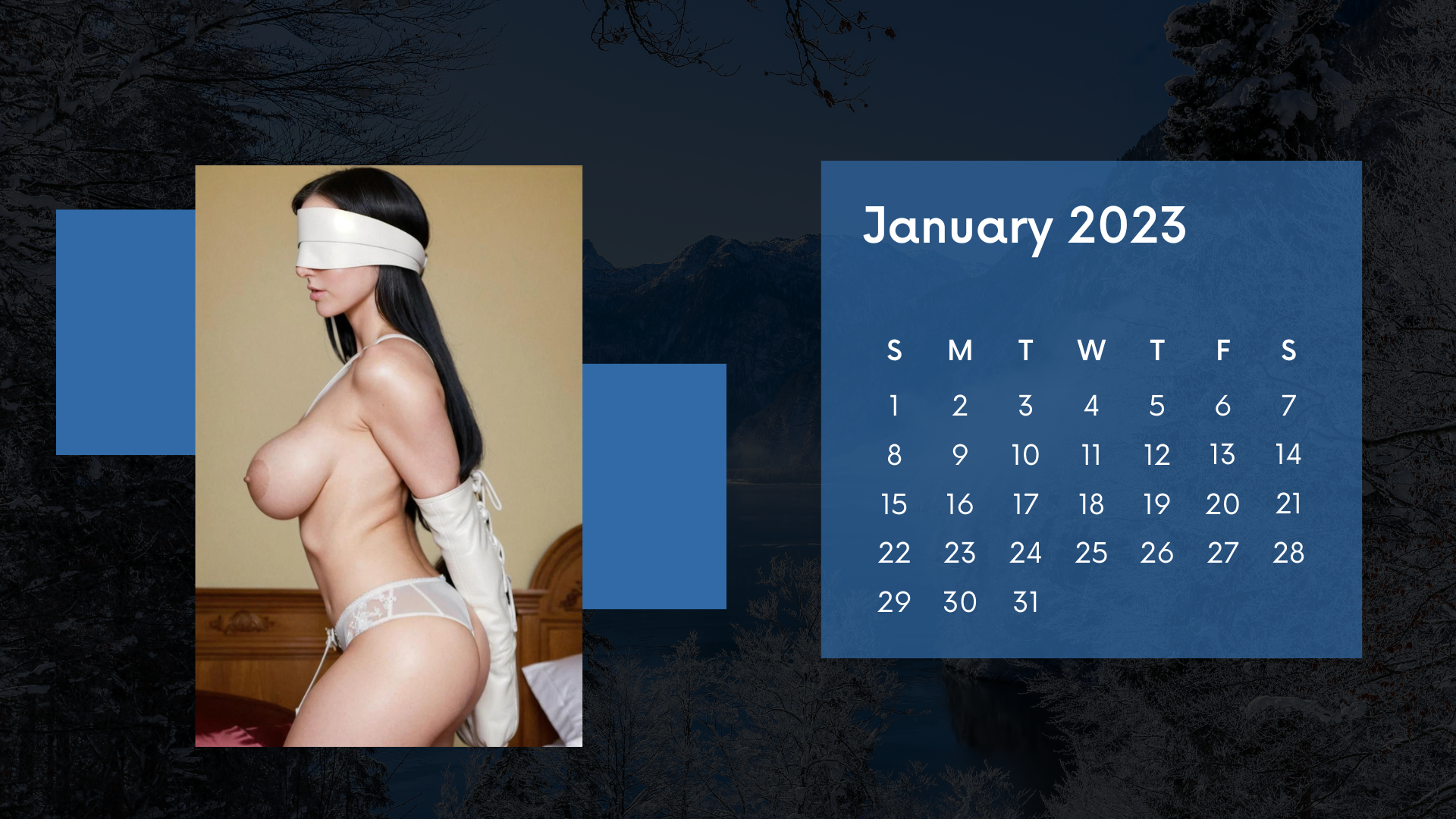 ИИ-генераторы с БДСМ (тем более со снафф) не особо дружат, так что картинки придётся брать из вышеупомянутого источника в основном (хотя может что и откопаю из "коллег" DarkAI). Генераторов календарей море - на Canva свет клином не сошёлся, хотя это весьма удобный ресурс.