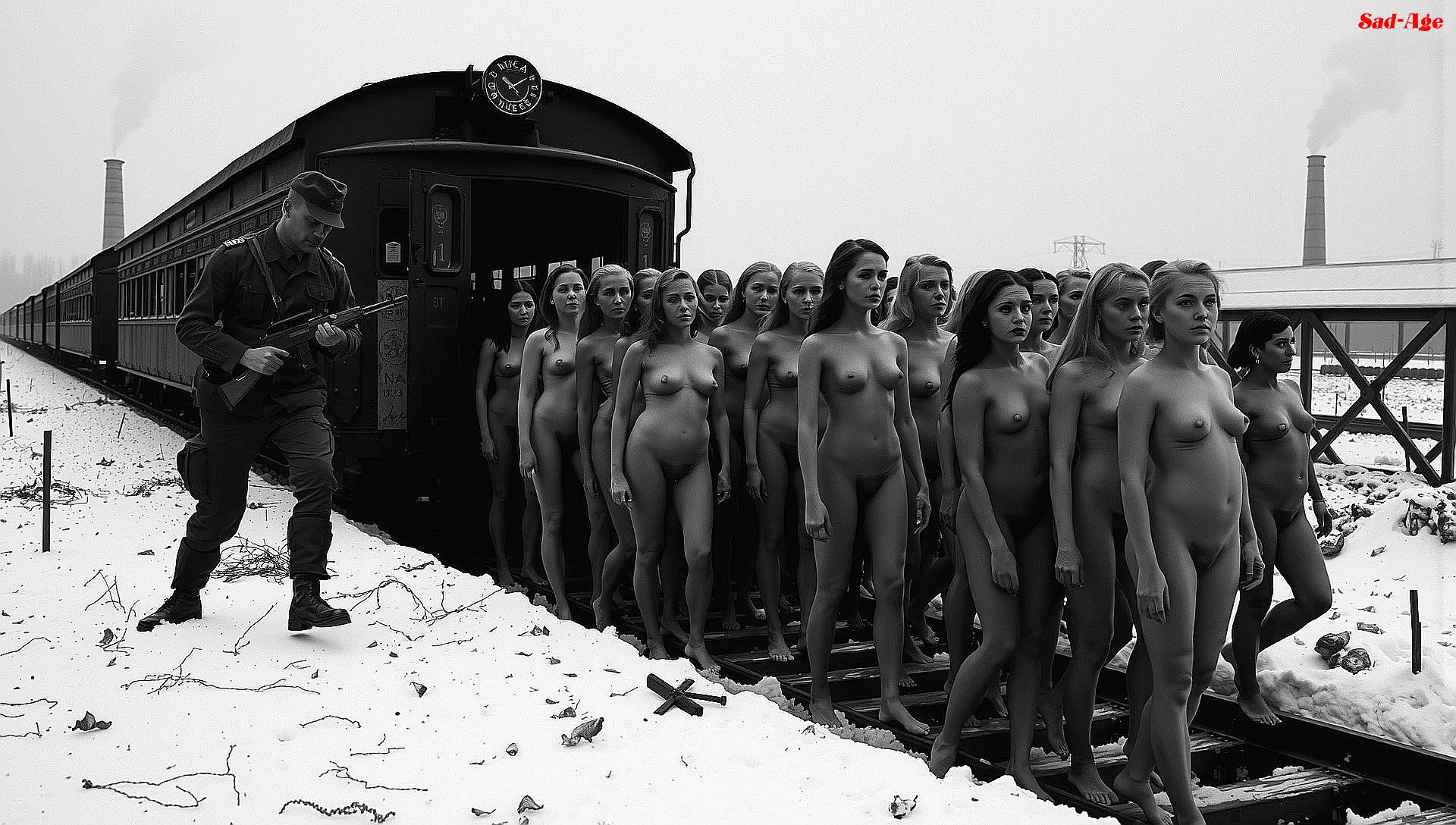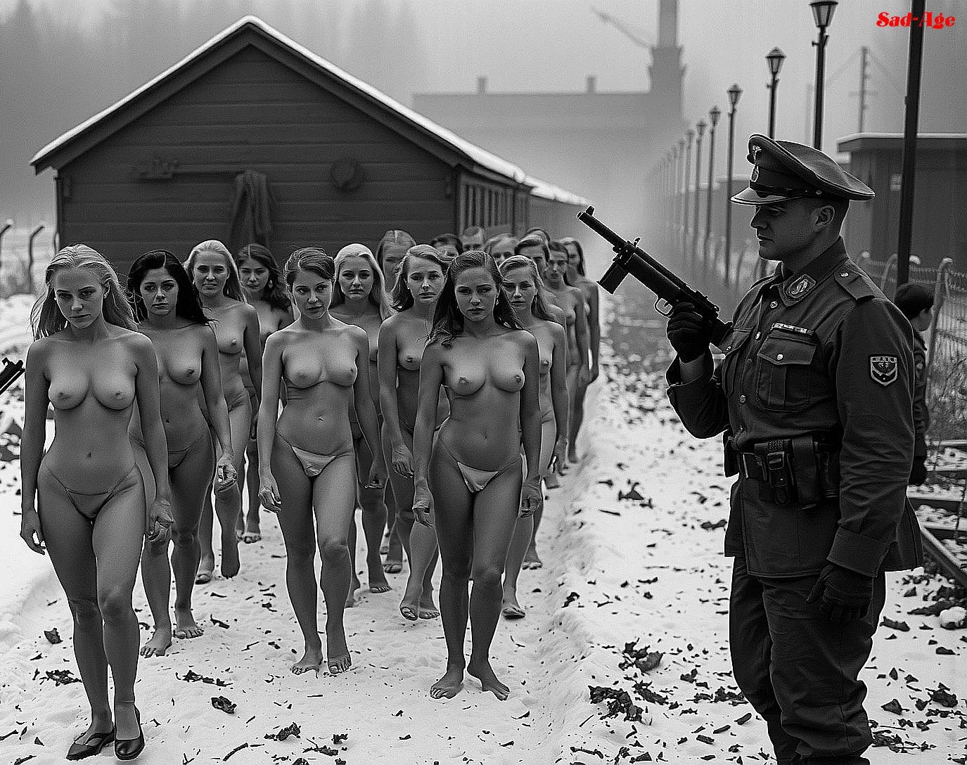 The rebellious women are taken to camps where they are severely punished. They are made to walk or run in the cold and snow to the execution sites.