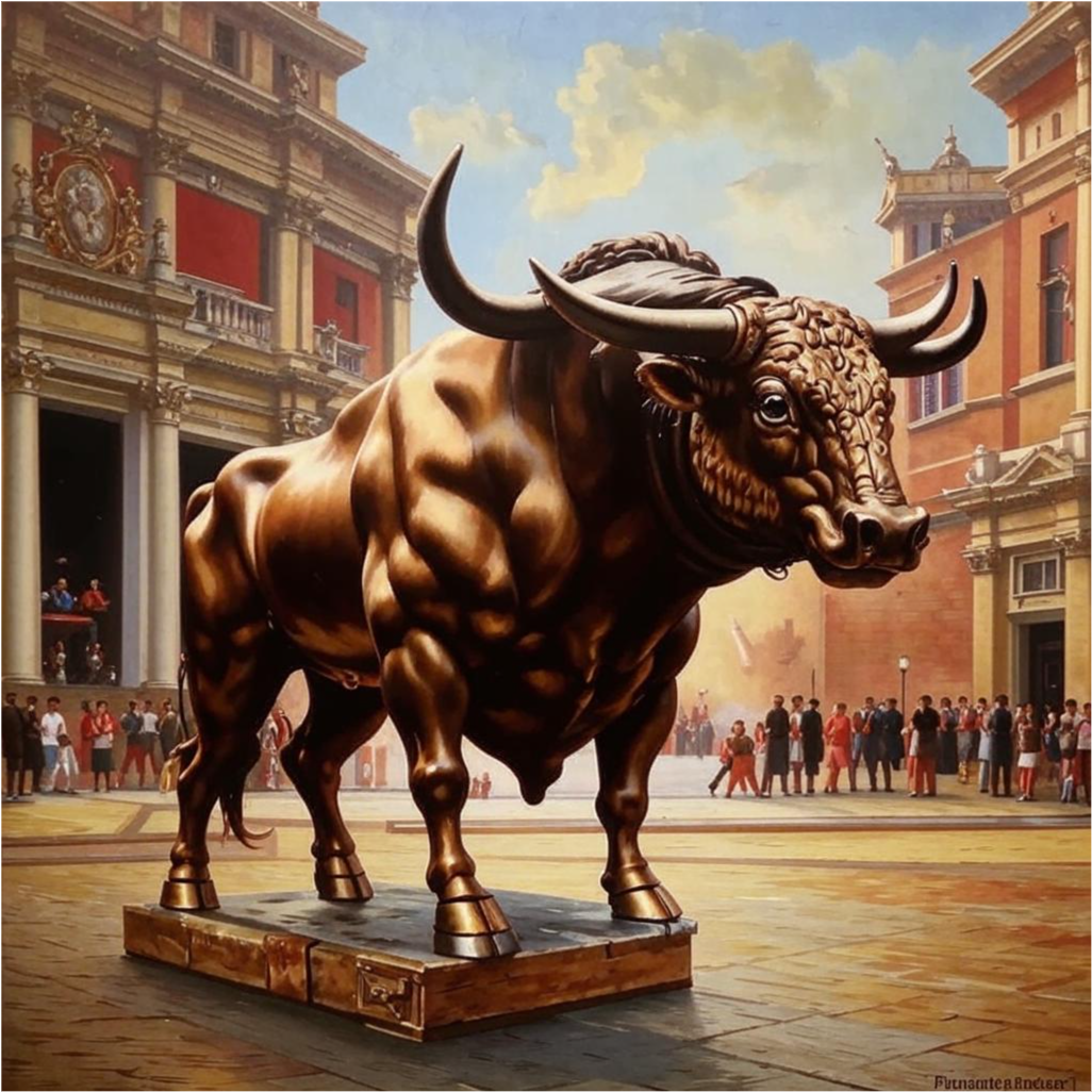 There is a scene of a large Bull in New York.