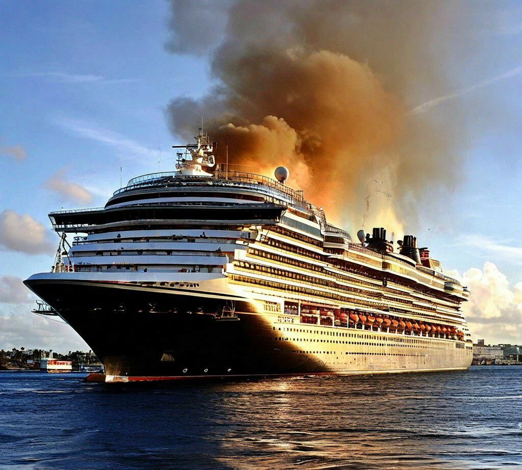 Re: Горящий круизный лайнер - AI Art