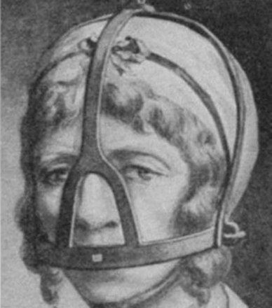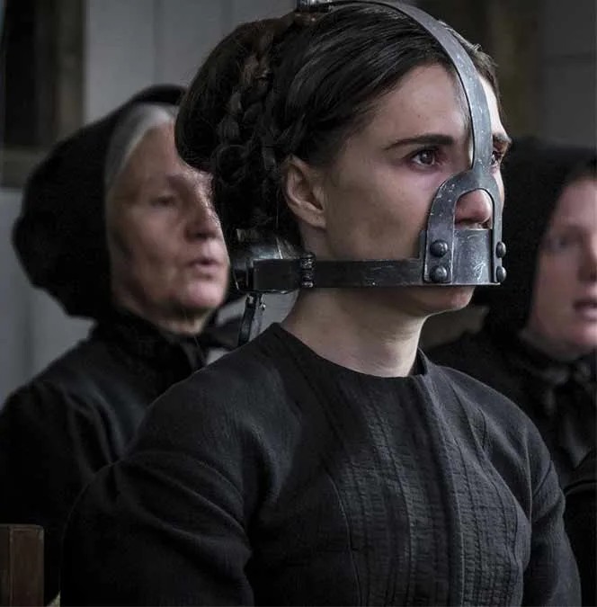 Вот так это дивайс выглядит в фильме Brimstone. Ещё более существенный ляп состоит в том, что в США такое орудие наказания не употреблялось. Совсем. Что сценарист фильма впихнул в фильм этот исторический нонсенс, неудивительно - это фильм голландского режиссёра и сценариста Мартина Колховена... а вот там этот ужас юзали очень даже (правда, лет так за 200 до времени действия в фильме Brimstone).