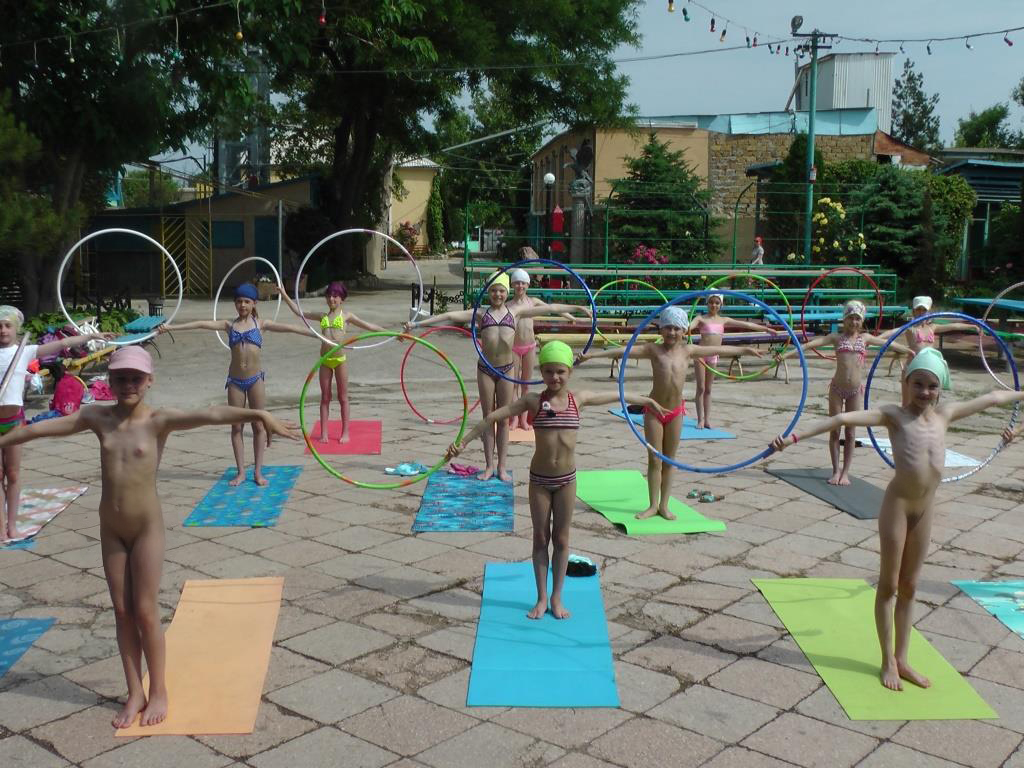 В тот день я решила совместить утреннюю зарядку и солнечные ванны.Выведя девочек на зарядку я сказала что кто захочет может полностью раздеться как на пляже.Я Сказала что стоять нагишом перед теплым солнышком очень полезно и что домой они вернуться красивыми и загорелыми.Некоторые послушали моего совета и пришли на зарядку нагишом.