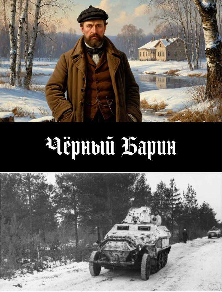 Действие повести "Чёрный Барин" происходит во Вселенной Крылатого Маркграфа в самом конце ноября 1941 года (сразу после "Големов" - так что это сиквел и сразу перед "Ночь и туман" - так что это приквел) в прифронтовом Подмосковье. Повесть о том, что кто всерьёз ищет, тот таки найдёт... правда, не обязательно там, где ищет.