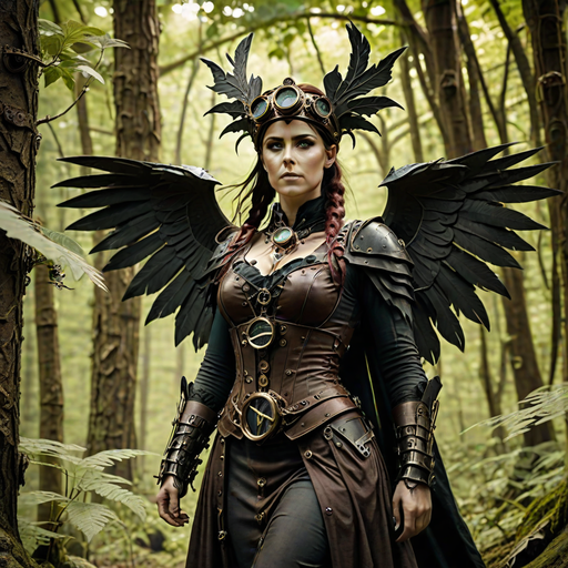 Goddess Morrigan in Irish forest under Black Sun - HP9.png