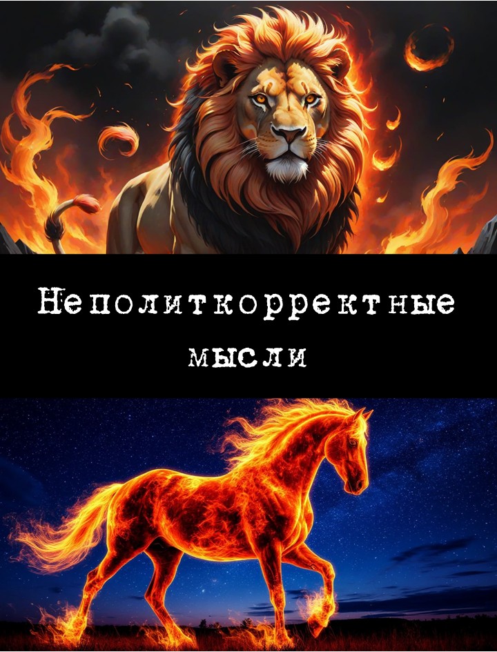 Обложка моя – сделана с помощью ИИ-генераторов изображений (Шедеврум и NightCafe), вместе собрана с помощью PowerPoint. Я Огненный Лев по гороскопу; родился в год Огненной Лошади… отсюда и картинки.
