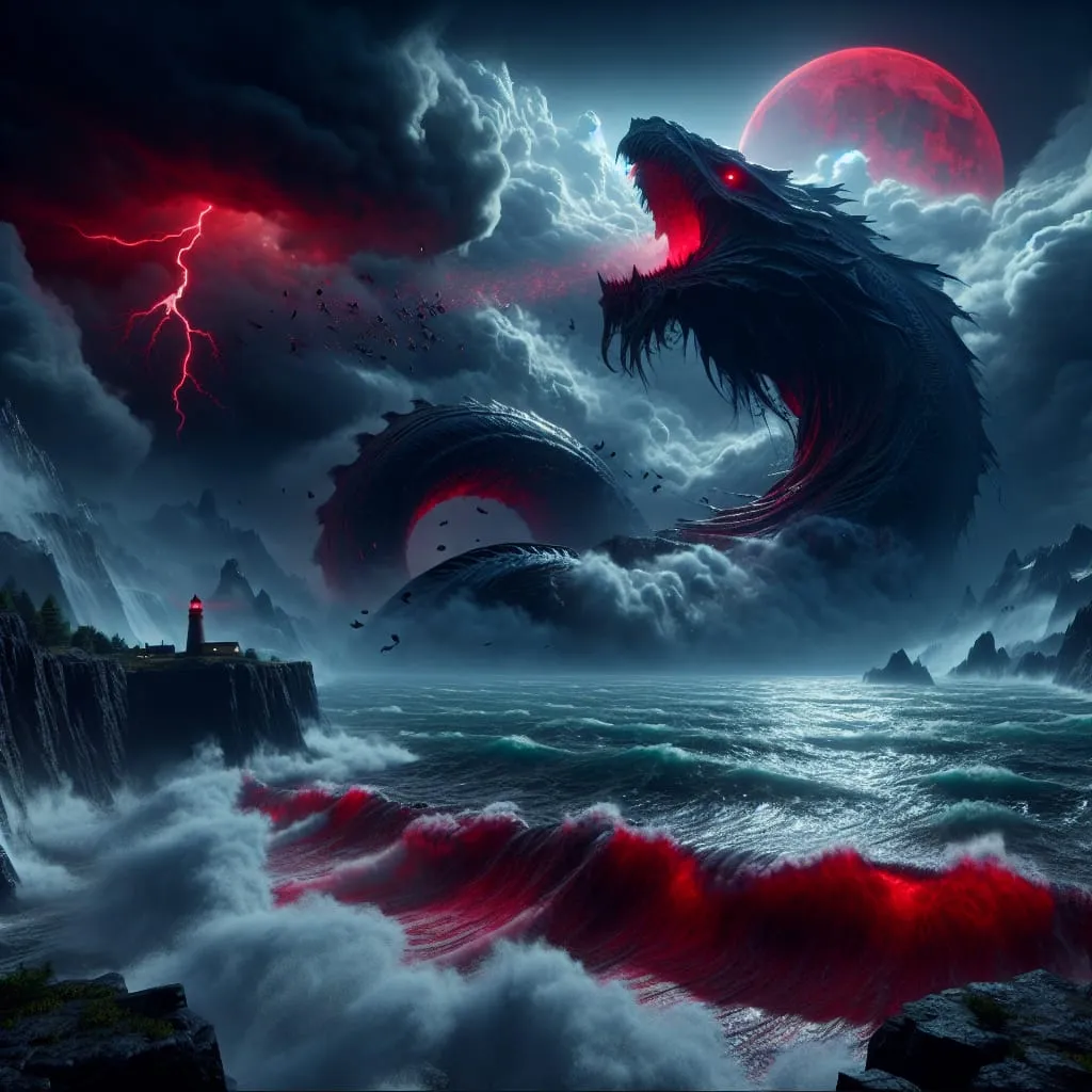 Vicious giant serpent rises from the ocean into a violent thunderstorm.jpg