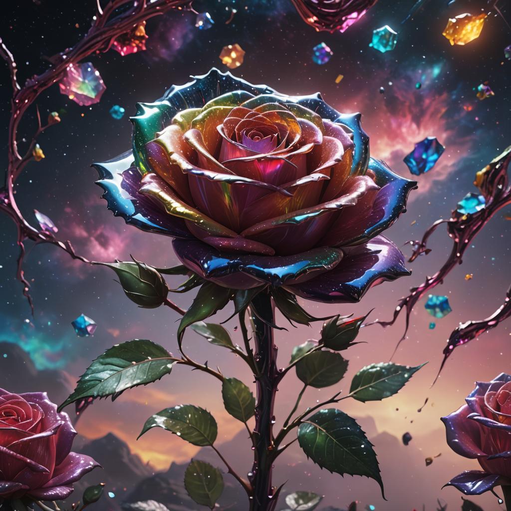 Giant rose made of rainbow glass in deep space.jpg