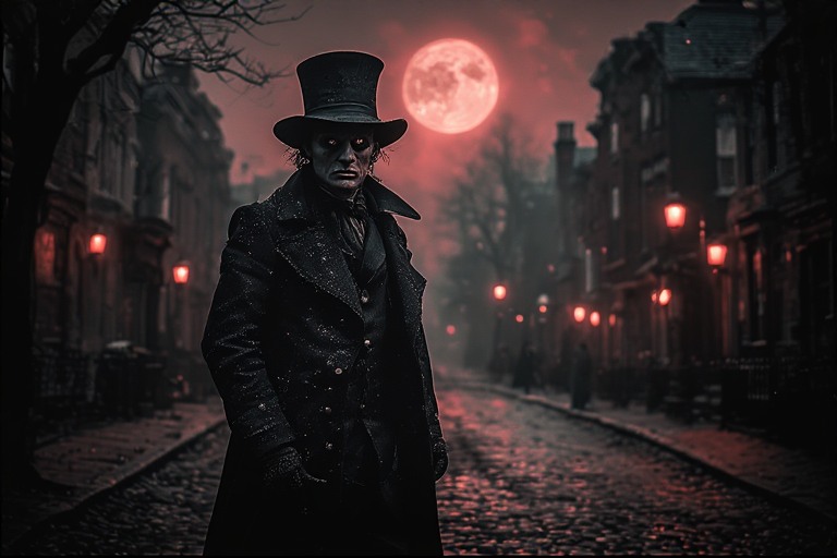 Jack the Ripper on dark Lindon street under blood moon - L1.jpg