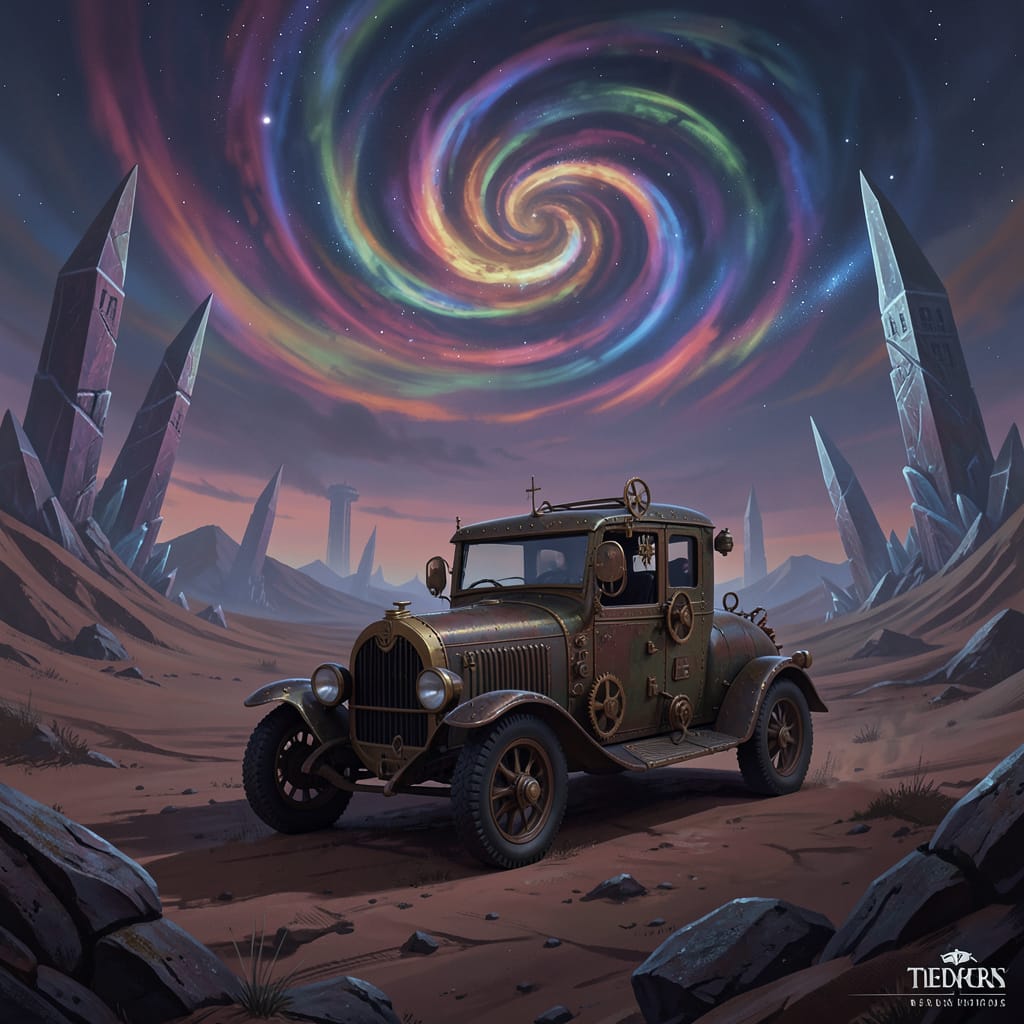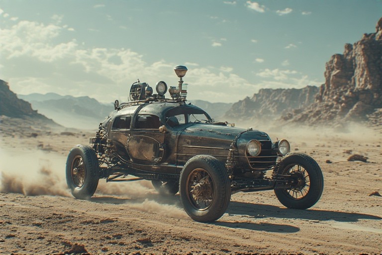 A solitary, steampunk-inspired automobile - H1.png