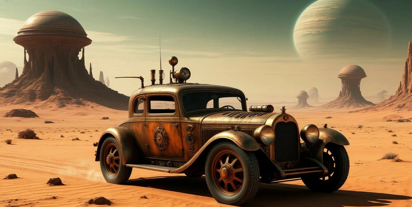 A solitary, steampunk-inspired automobile - P1.jpg