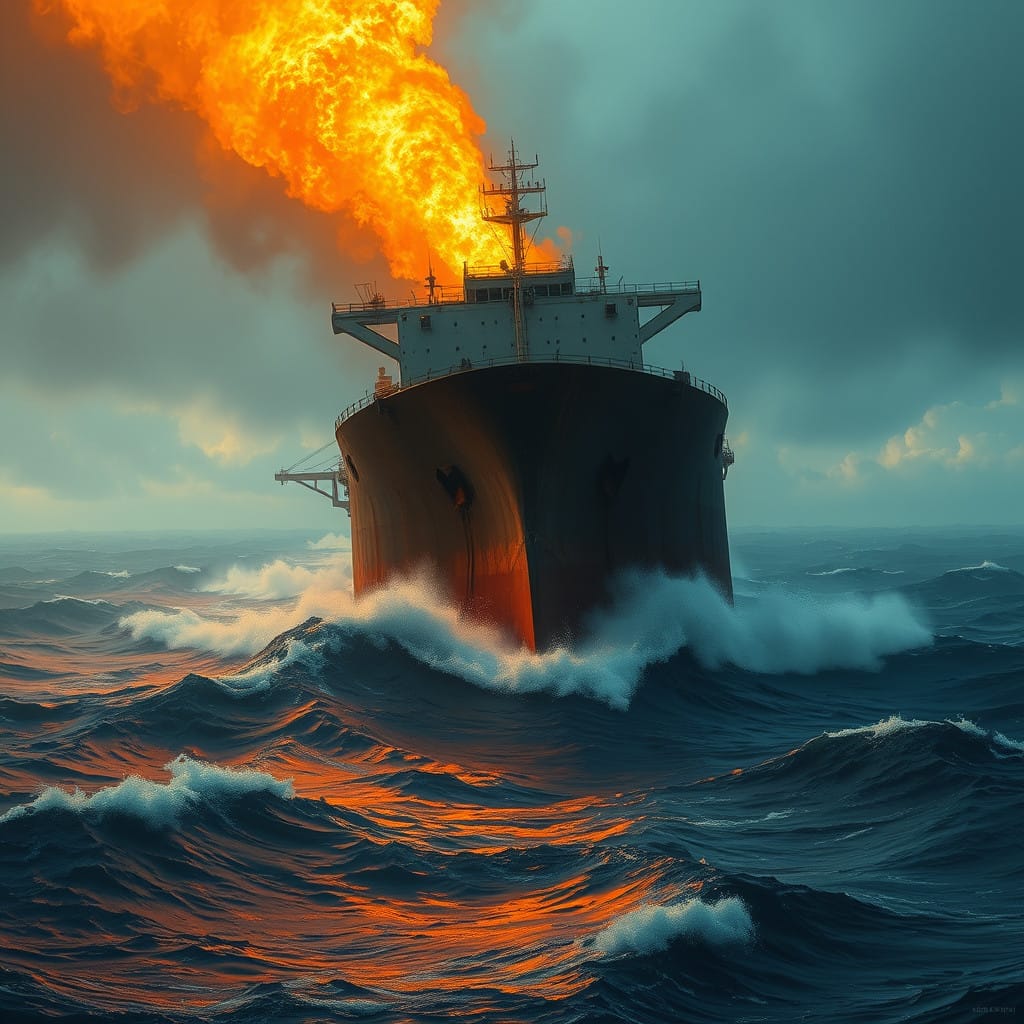 Burning giant oil tanker in Devil's Sea.jpg