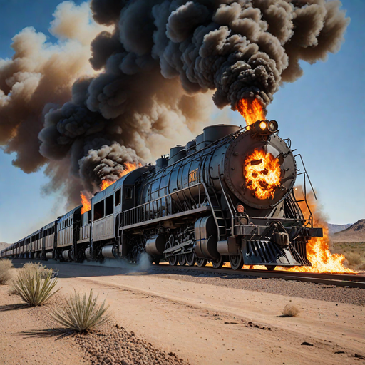 Burning armored train in Arizona desert.png