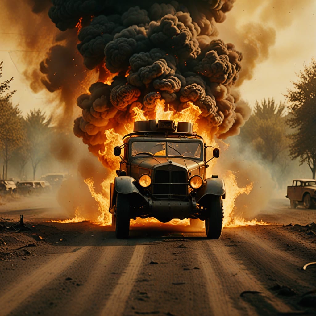Vintage armoured car driving into vicious hellfire.jpg