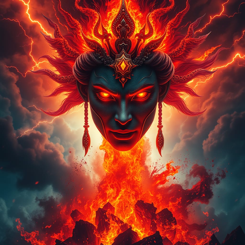 Face of goddess of rage in the sky over vicious wildfire.jpg
