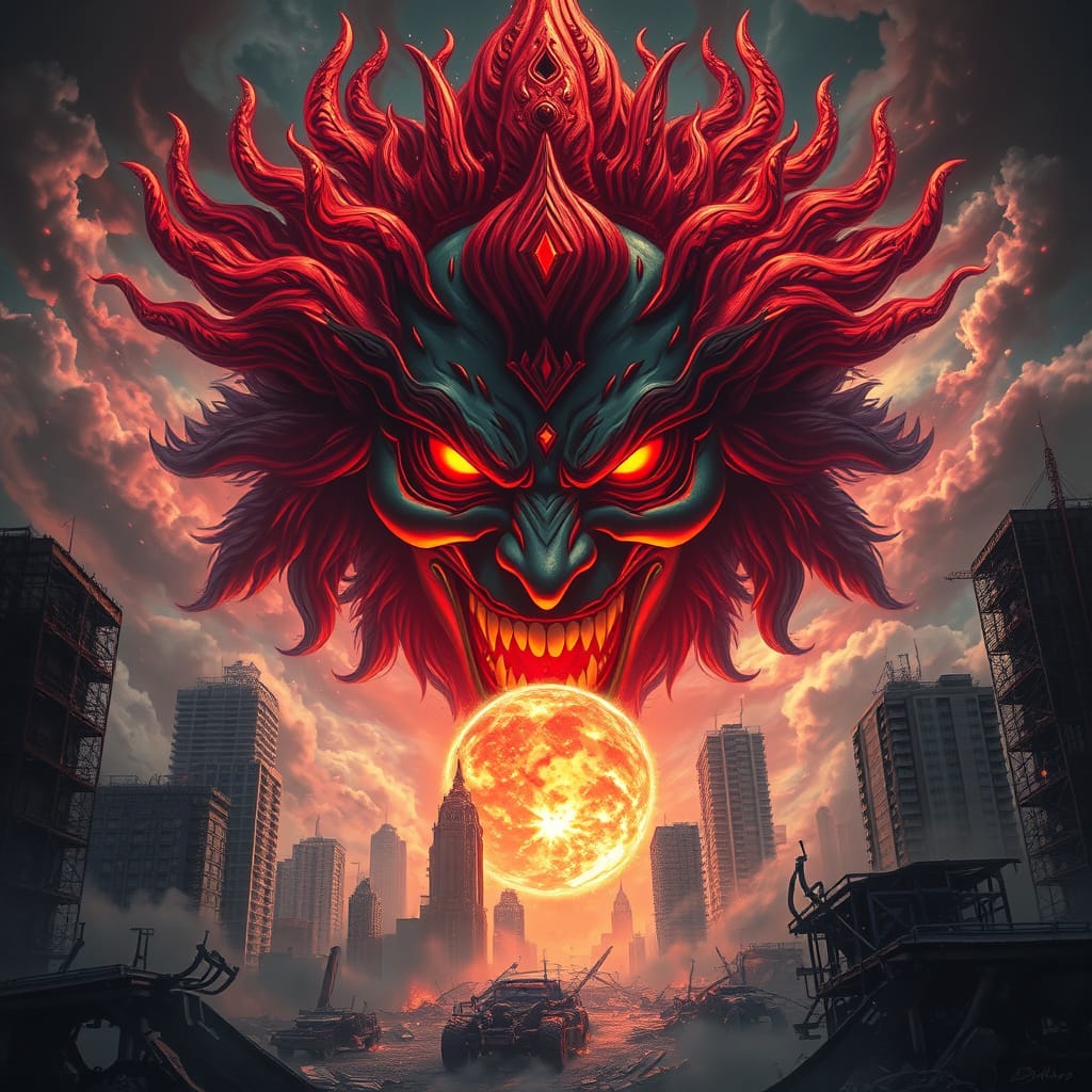Face of goddess of rage in the sky over apocalyptic city.jpg