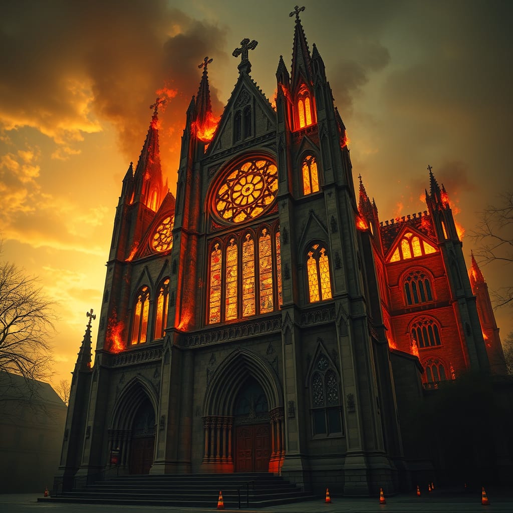 Medieval Gothic cathedral engulfed in flames - JFL.jpg