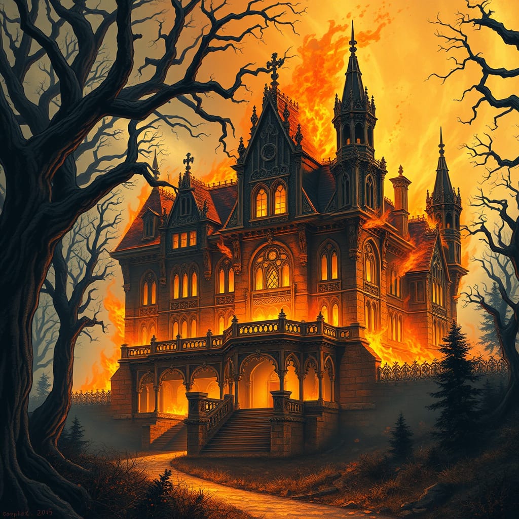 Burning mansion in magical forest.jpg