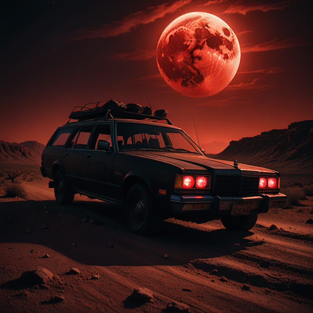 Demonic station wagon in Arizona desert under blood moon.jpg