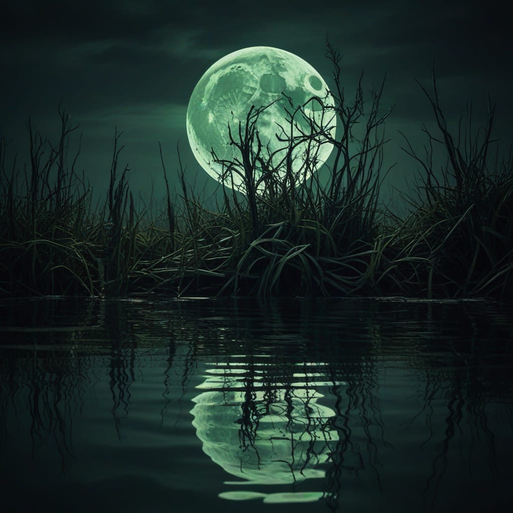 Sinister presence in the lake under full round green moon.jpg