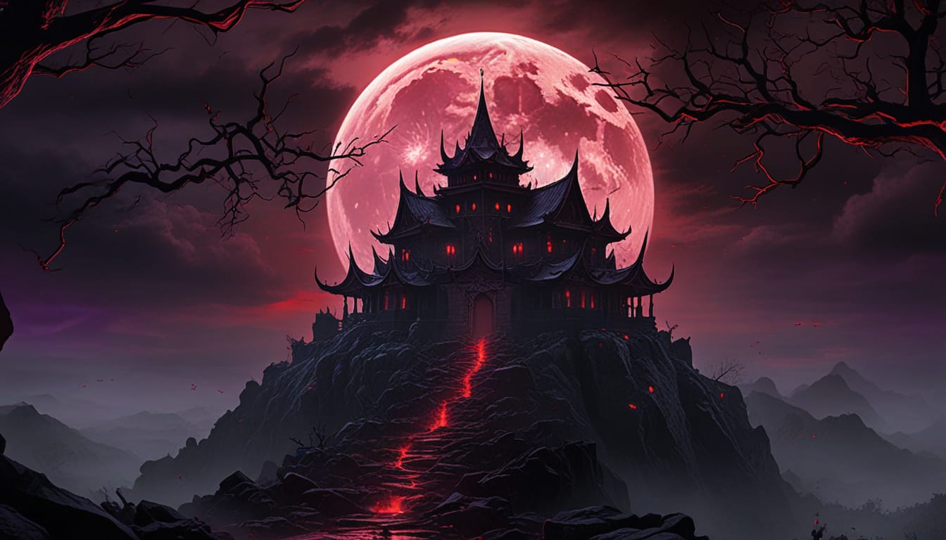 Evil-looking swamp lady under full round green moon - АXL.jpg