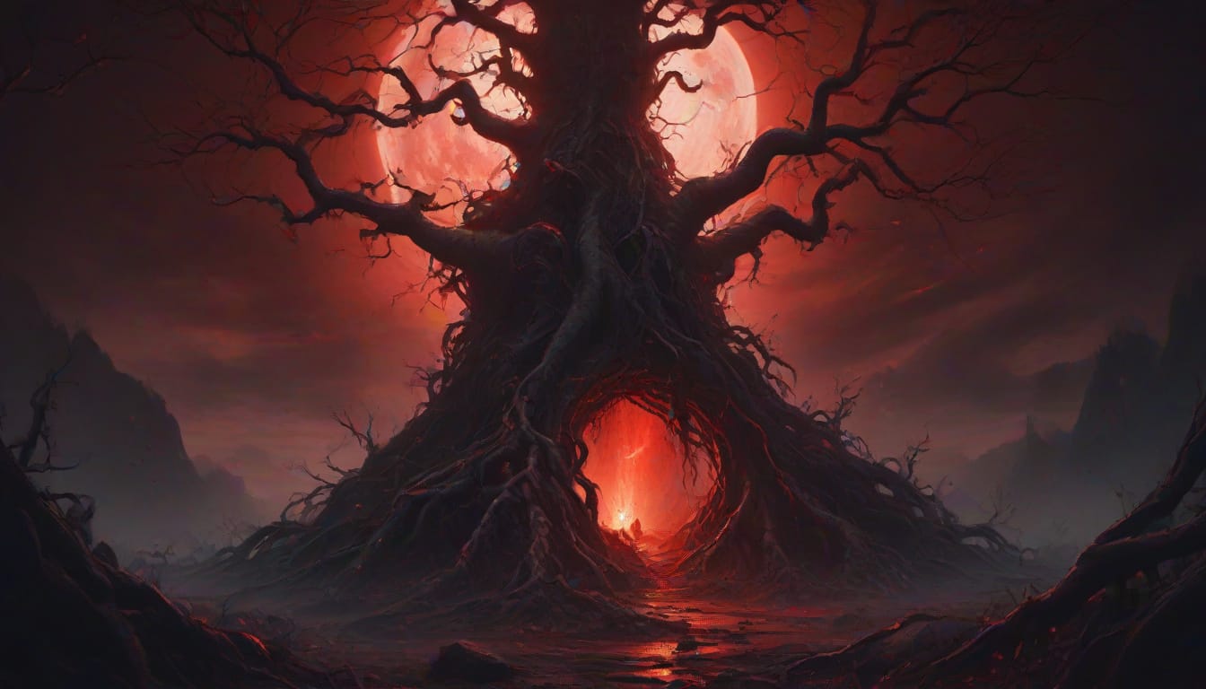 Evil-looking swamp lady under full round green moon - BXL.jpg