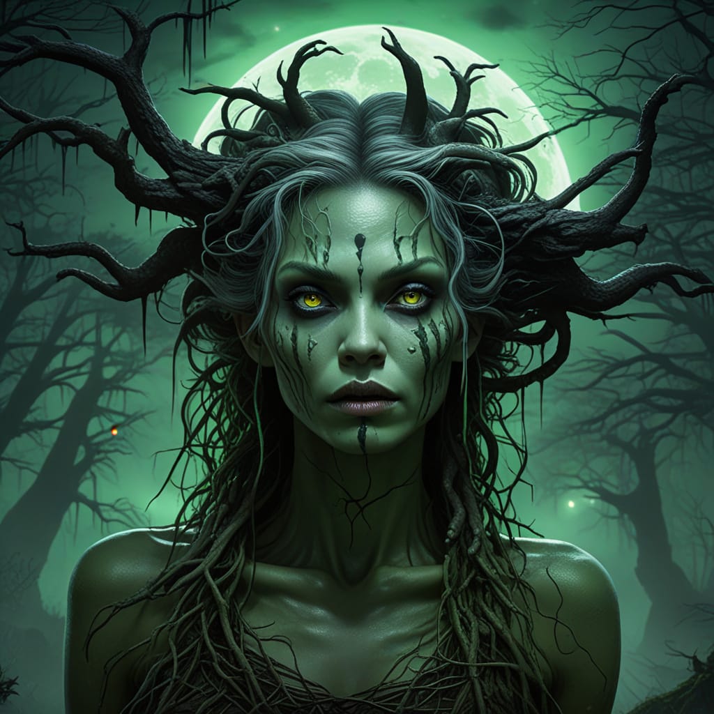 Evil-looking swamp lady under full round green moon - RV4.jpg