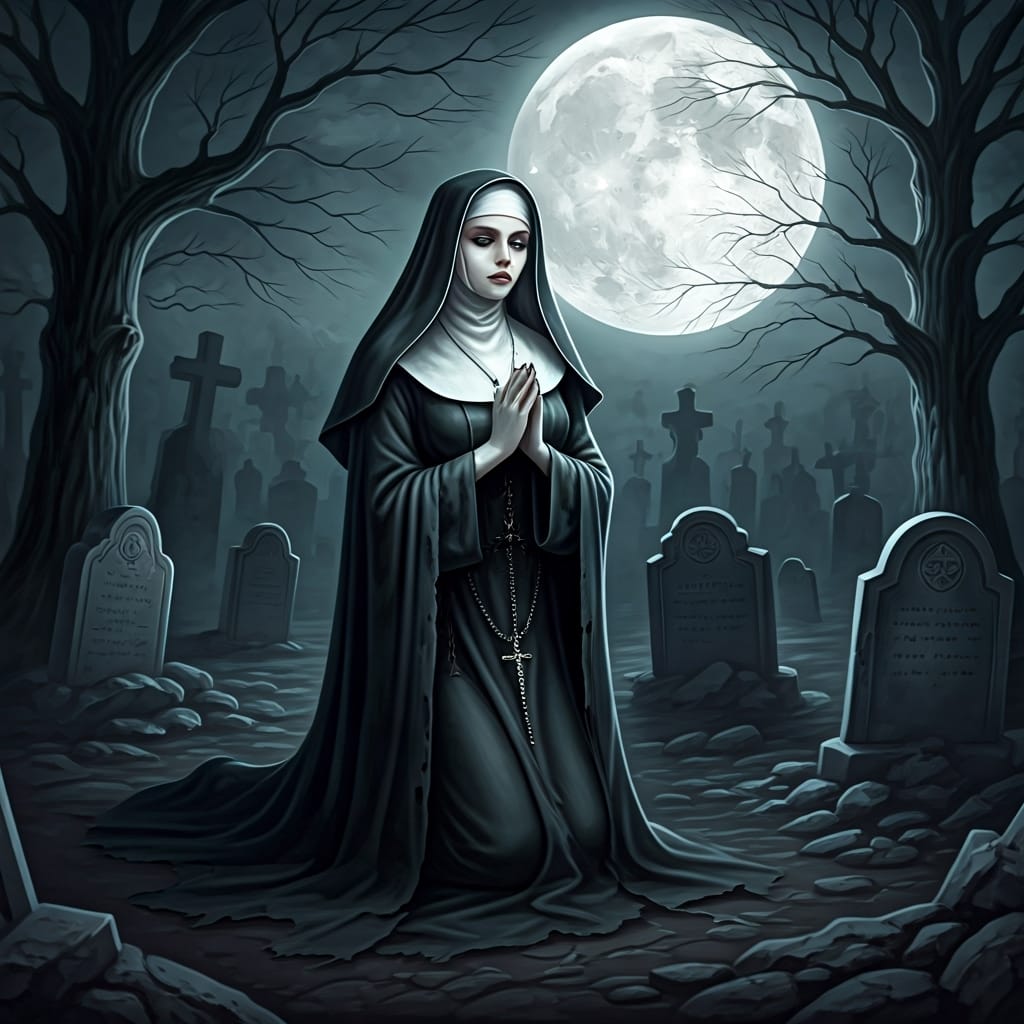 Mourning gothic nun in Catholic cemetery - GIF.jpg