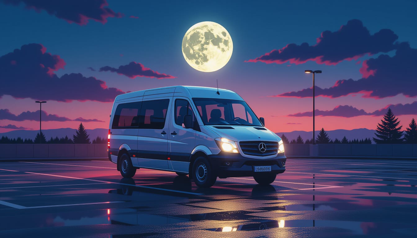 Silver Mercedes van lands in the empty parking lot - H11.jpg