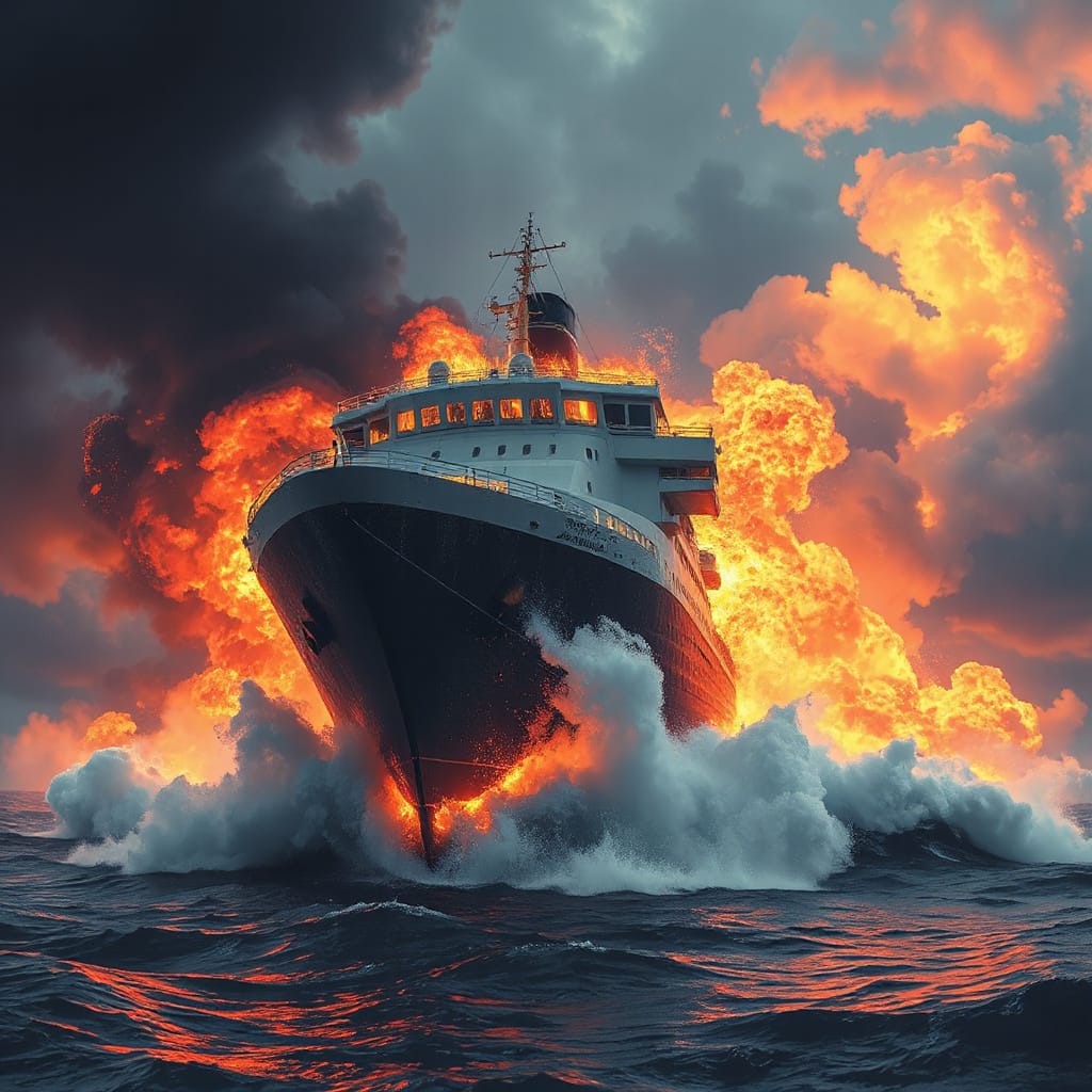 Giant cruise liner in burning Devil's Sea -JFL.jpg