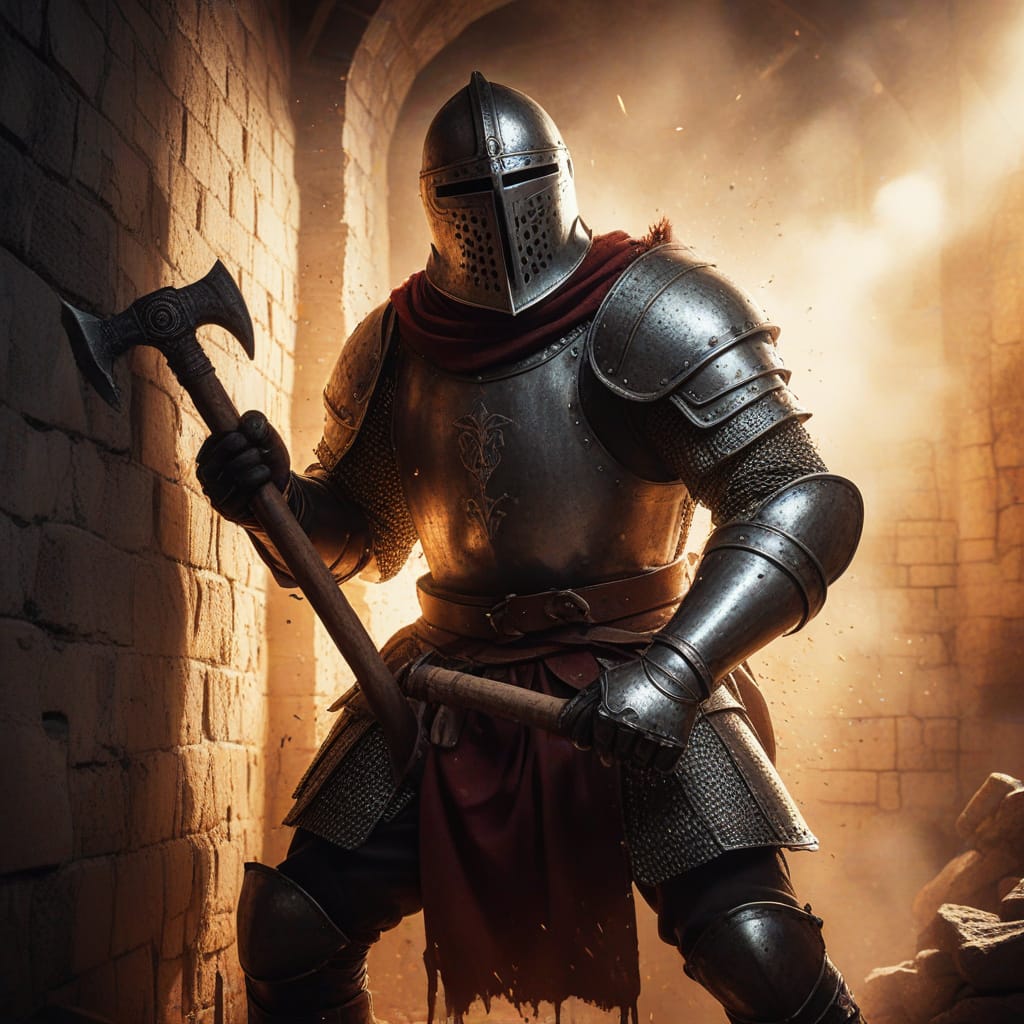 Medieval knight breaks through the wall - МXL.jpg
